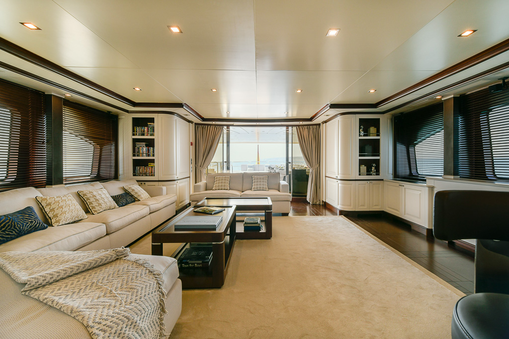 She sleeps up to 12 guests in five sumptuous en suite staterooms to include a full-beam master suite, two double staterooms, two twin staterooms and two Pullman beds.